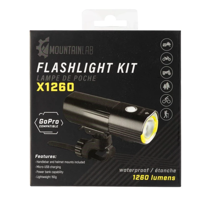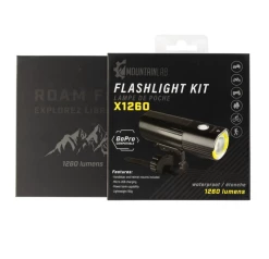 The Mountain Lab X1260 Flashlight strikes the perfect balance of brightness, weight and functionality for adventurers on the move. The X1260 is equally well-suited for mounting on a helmet or handlebars and it will light the way for any outdoor activity in the dark, in any weather. Â